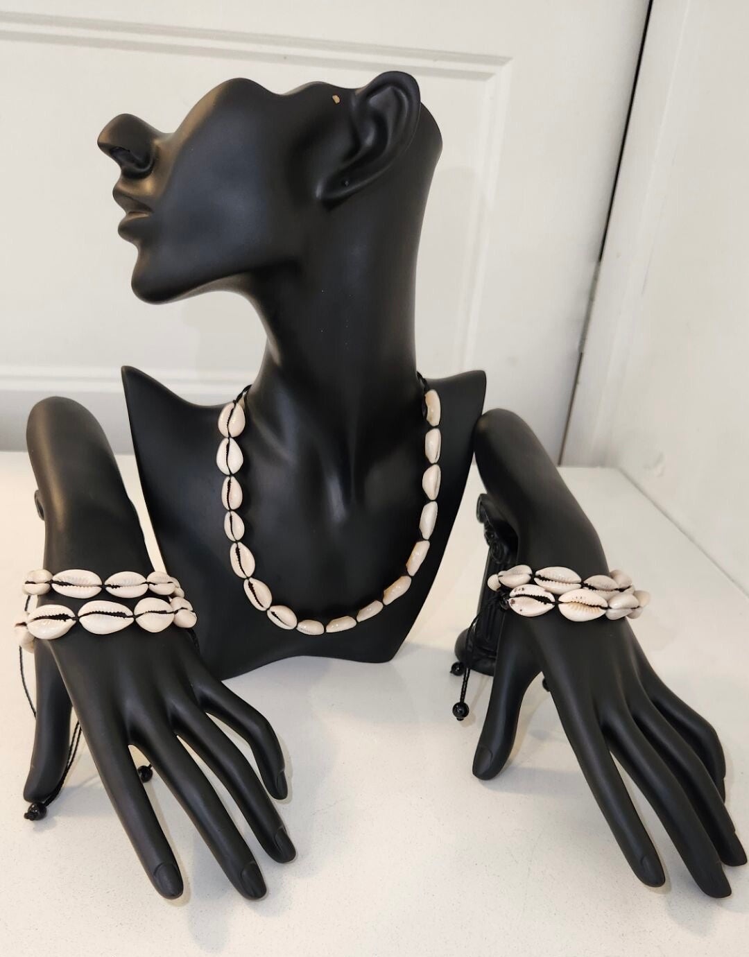 Cet ensemble comprend un collier, un bracelet et une chaine pour votre cheville.